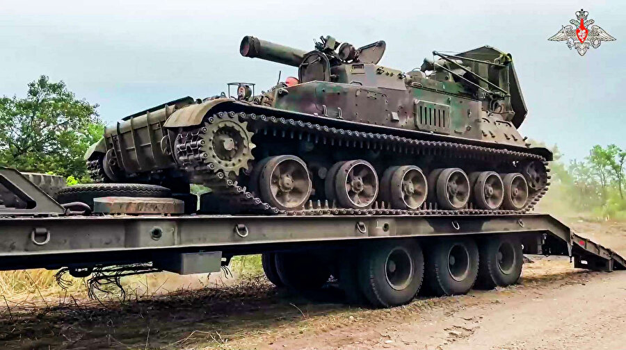 Rusya Savunma Bakanlığı'ndan yapılan açıklamada, Wagner'den alınan mühimmatlar gösterilirken, görüntülerde tank ve zırhlı araçlar ile topçu silahları dikkat çekti.