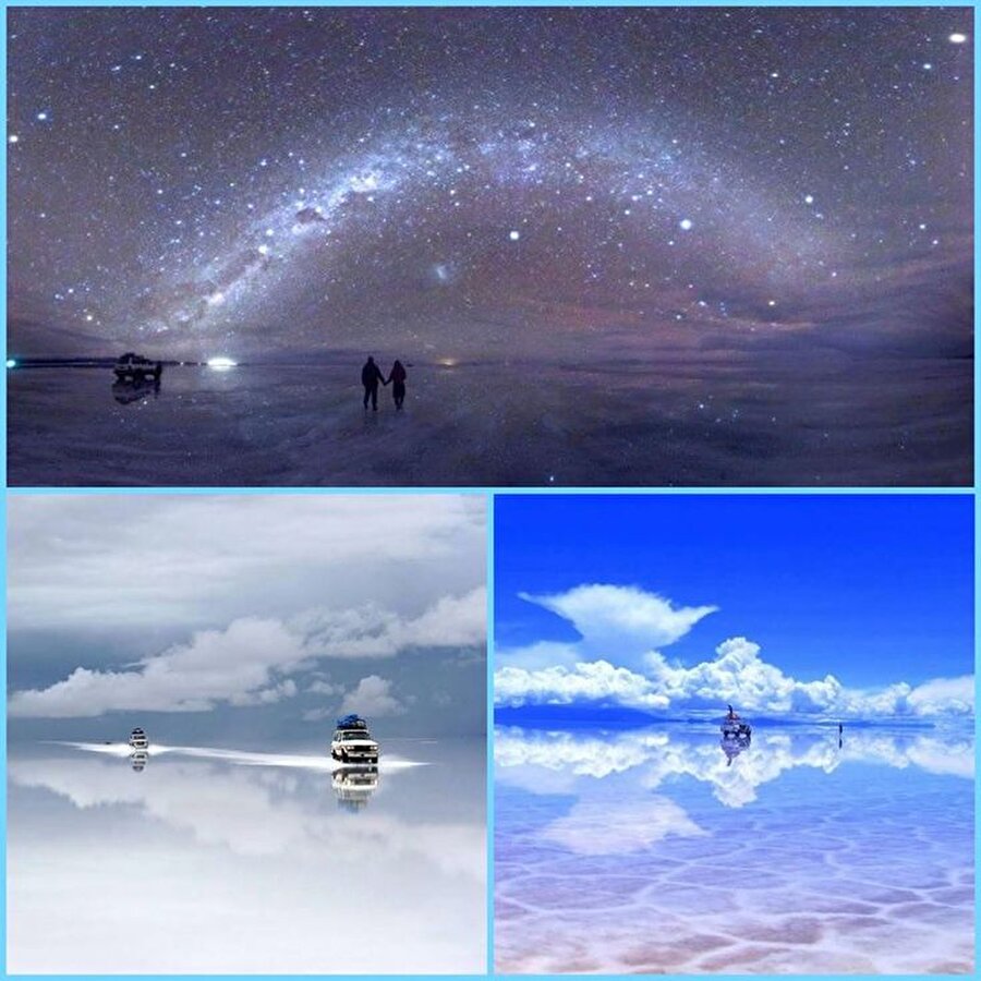 Bolivyada,Salar de Uyuni gölü dünyanın en büyük tuz gölüne ev sahipliği yapıyor. Yağmur zamanları sanki dev bir aynaya dönüşen bu göl, gökyüzünü öyle kusursuz bir simetriyle yansıtıyor ki halk arasında gölün adı artık 'Dünya ve cennet arasındaki sınır' olarak anılıyor.
