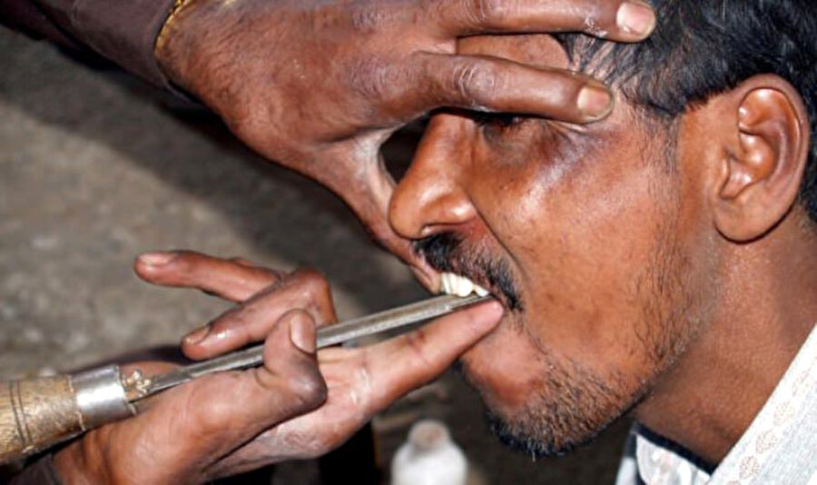 Dünyanın en büyük yedinci coğrafi alanı ve en büyük ikinci nüfusuna sahip olan Hindistan'da işte böyle diş çekiyorlar.