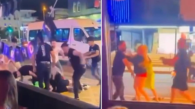 Muğla'nın Marmaris ilçesindeki bir eğlence mekanında hesap yüzünden 2’si kadın 4 turist ile çalışanlar arasında çıkan tekmeli ve yumruklu kavga cep telefonuyla görüntülendi. Olayla ilgili 5 iş yeri çalışanı gözaltına alındı.