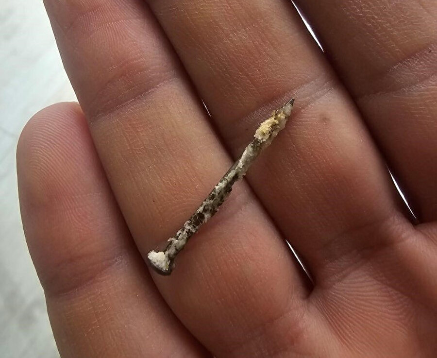 Ekmeğin içinden inşaat çivisi çıktı: Yutmak üzereyken fark etti