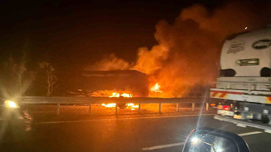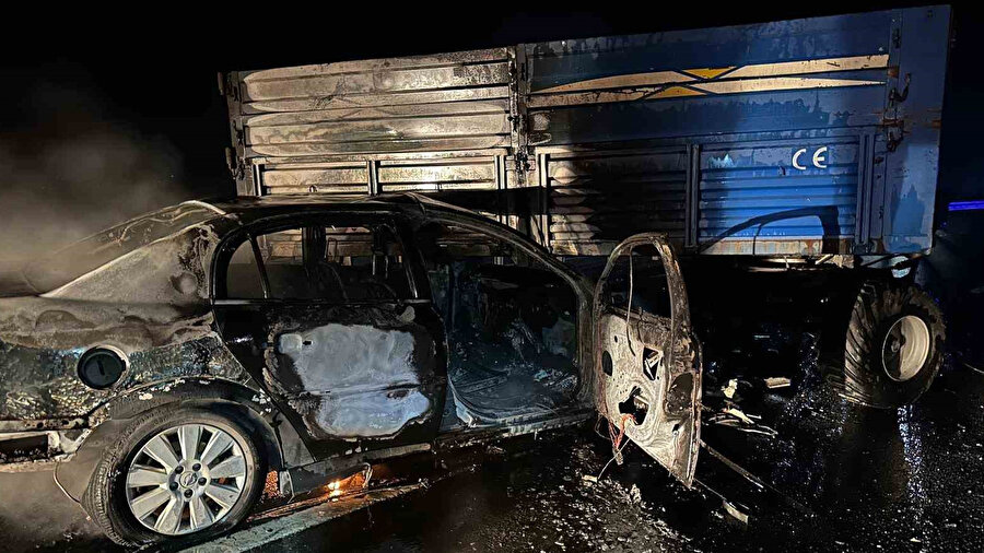 Elazığ-Bingöl karayolunda otomobil, traktör römorkuna arkadan çarpıp alev topuna döndü. Kazada 2 kişi yaralandı, araçta çıkan yangın itfaiye tarafından söndürüldü.