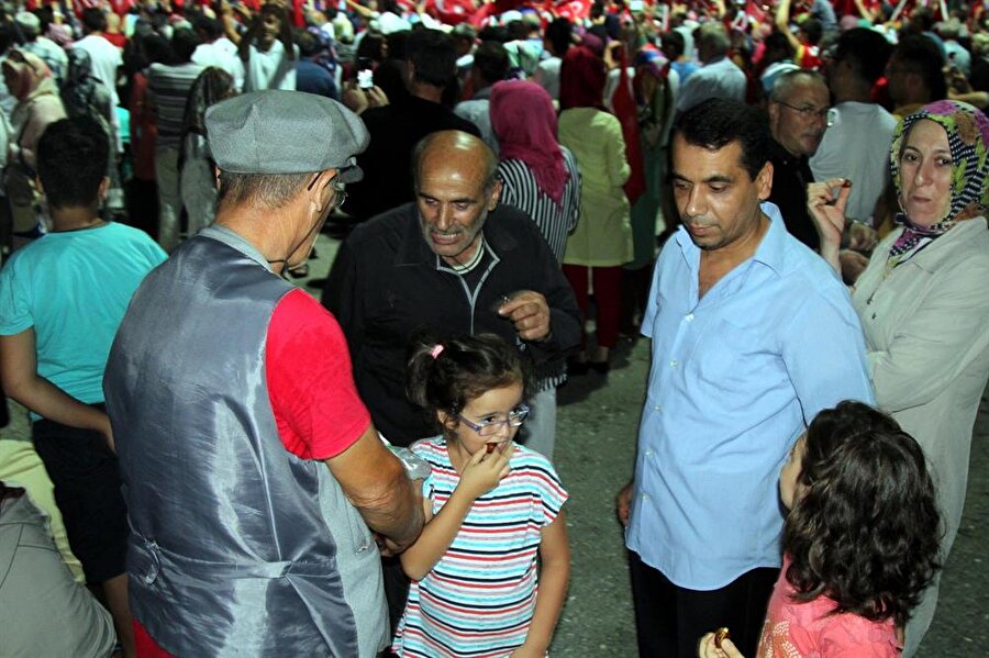 İzmit'te, 54 yaşındaki emekli vatandaş Vedat Kaplan dün sona eren 'Demokrasi Nöbeti' sırasında her gece erik dağıttı.