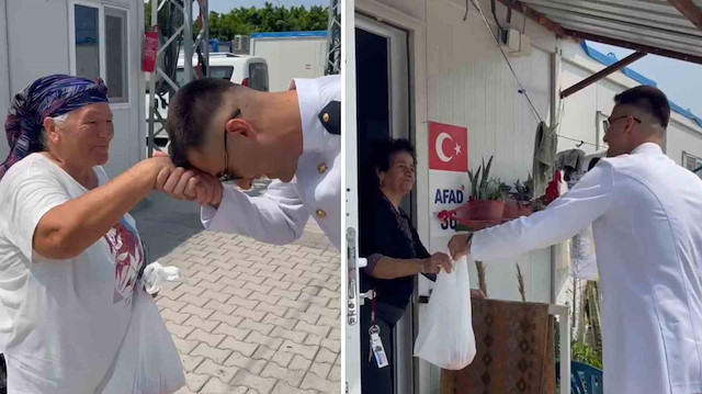 Enkazdan çıkınca adadığı kurbanın etini konteyner kentte dağıttı