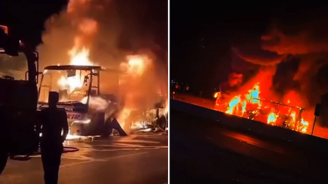 Erbil'de korku dolu anlar: Yolcu otobüsü Türkiye'ye dönerken alev aldı