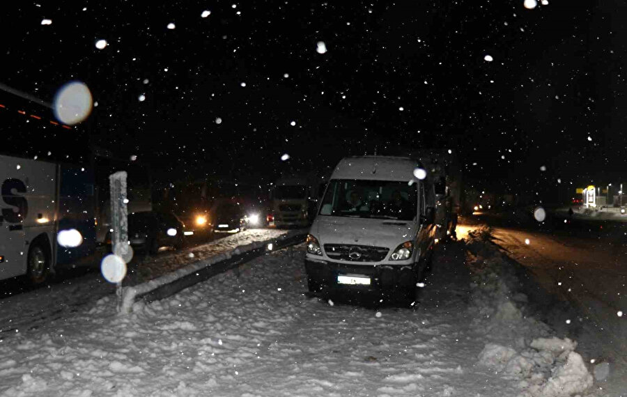 Kar yağışı nedeniyle kontrol noktalarında görev yapan polis ekipleri, olumsuz hava koşullarını gerekçe göstererek sürücülerin geçişine izin vermiyor. Sürücüler, geçitlerde beklemeye devam ediyor.