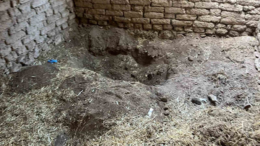 Muhammer Kılınç’ın gömüldüğü Yahnikapan Mahallesi’ndeki 90 dış kapı numaralı ve mısır tarlası yanında bulunan evin bahçesindeki ahır görüntülendi. Ahırda Muhammer Kılınç’ın çıkarıldığı çukur ve yapılan çalışmaların izleri göze çarptı.