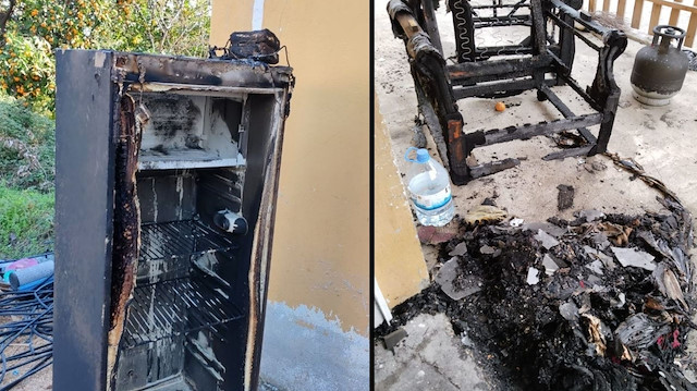 Hatay Erzin’de bir evde çıkan yangında, buzdolabının kablosundan kaynaklandığı tahmin edilen alevler evi kullanılmaz hale getirdi. Evde bulunan anne ve oğlu, dumanı fark edip pencereden atlayarak canlarını kurtardı. Komşuların ve itfaiyenin müdahalesiyle yangın kontrol altına alındı; şans eseri can kaybı yaşanmadı.