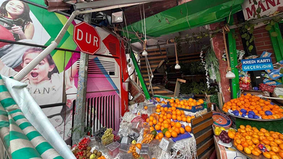 Çarpmanın etkisiyle manav Vedat Sidal’ın işyerinde maddi hasar meydana geldi. Sidal, otobüsün arka kapıdan öğrenci almak için yanaştığı sırada fren boşalması yaşandığını belirterek, “O sırada bir çalışan içerideydi ve büyük şok yaşadı. Şans eseri kimseye bir şey olmadı” dedi.