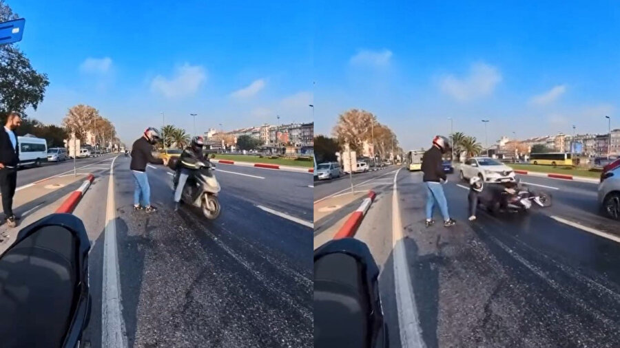 Fatih’te, yola dökülen yağ nedeniyle kayganlaşan zeminde ilerleyen motosikletliler peş peşe kayarak düştü. Bazı sürücüler ise düşen motosikletlilerin uyarıları sayesinde son anda kazadan kurtuldu. O anlar cep telefonu kamerasına yansıdı.