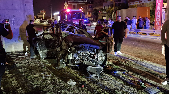Feci kaza: Otomobil köprünün ayağına çarptı