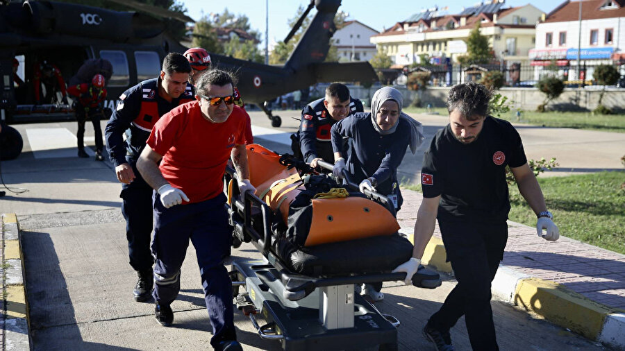 Alanın sarp ve kayalık olması nedeniyle kazazedelerin taşınması için Jandarma Filo Komutanlığından helikopter talep edildi. Helikopterle bulundukları alandan alınan kazazedeler, Fethiye Devlet Hastanesine getirildi.