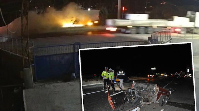 Manisa’nın Salihli ilçesinde bir otomobilin karşı şeride geçerek kamyonetle çarpışması sonucu 1’i çocuk 5 kişi yaşamını yitirdi, 6 kişi yaralandı. Otomobilin çarpışmanın etkisiyle ikiye bölünüp alev aldığı feci kaza, güvenlik kamerasına saniye saniye yansıdı. Yaralı çocuklardan birinin durumu ağır. Kazayla ilgili soruşturma sürüyor.