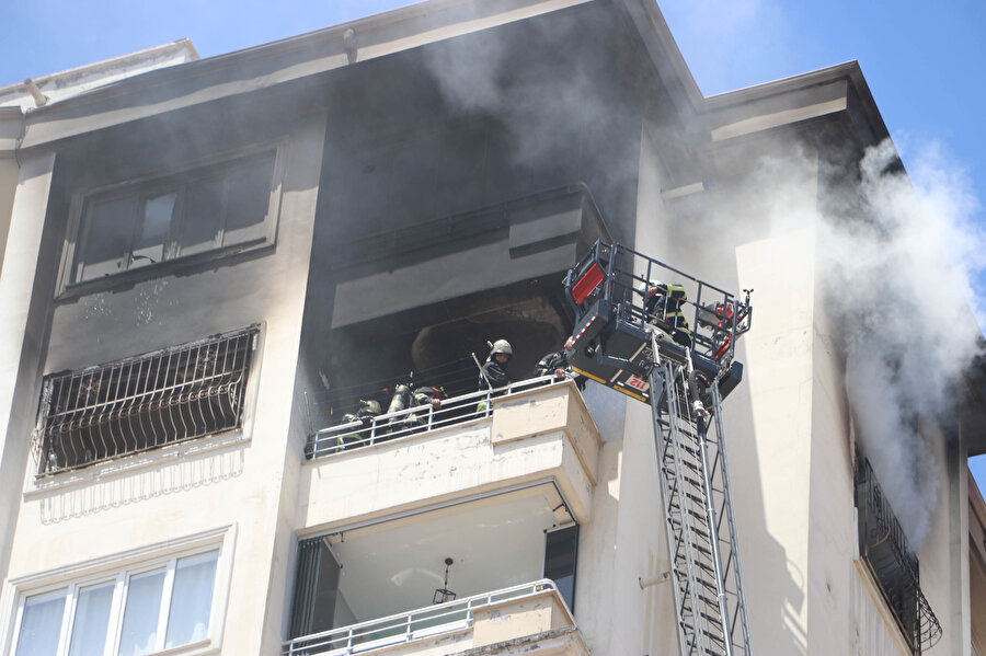 Akkent Mahallesi'nde öğle saatlerinde 15 katlı binanın 14'üncü katındaki dairede yangın çıktı. Alevler, üst kata da sıçradı. Binadakiler, apartmanın bahçesine inip, durumu 112 Acil Çağrı Merkezi'ne bildirdi. İhbarla, adrese çok sayıda polis, itfaiye ve sağlık ekibi sevk edildi. İtfaiyeciler, yangını söndürmek için çalışma başlatırken, dumandan etkilenen 5 kişiye ise sağlık görevlileri müdahale etti. Ekiplerin 2 saatlik çalışmasıyla yangın kontrol altına alındı.