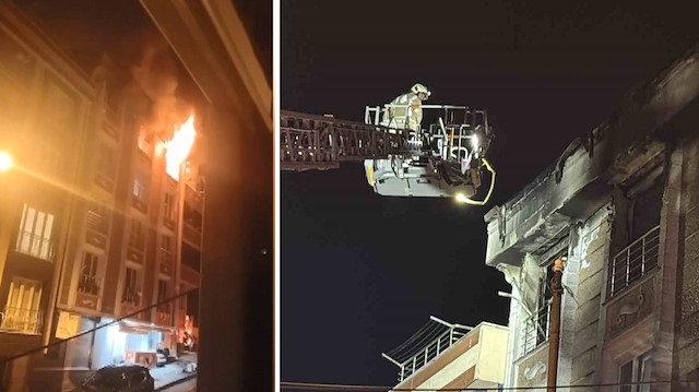 İtfaiye ekipleri merdiven araçları yardımıyla yangına müdahalede bulundu.