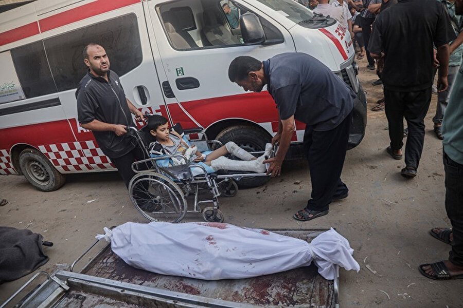 Saldırıda hayatını kaybedenlerin cenazeleri ile yaralılar Gazze'deki Şifa Hastanesine getirildi.