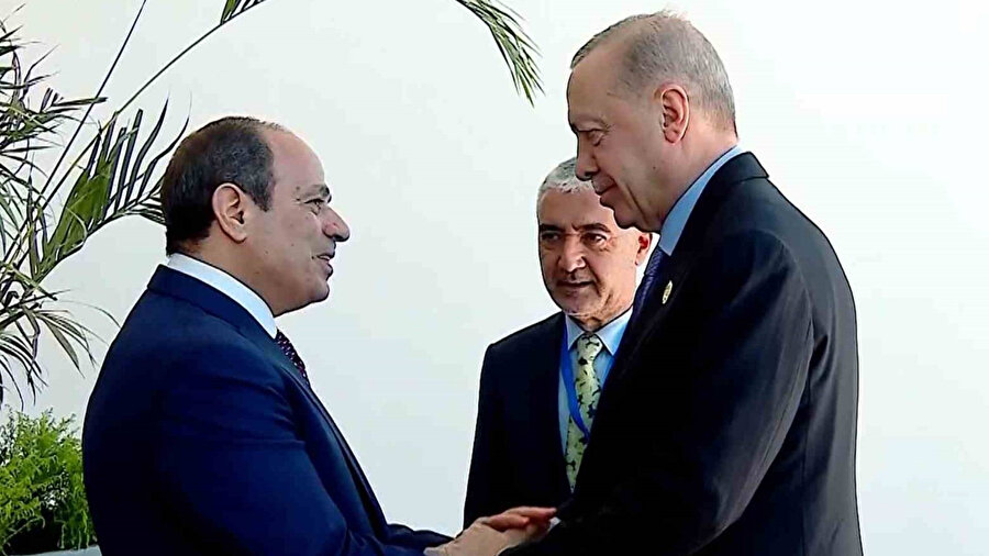 Dışişleri Bakanı Hakan Fidan, Milli İstihbarat Teşkilatı (MİT) Başkanı İbrahim Kalın, Cumhurbaşkanlığı İletişim Başkanı Burhanettin Duran ile Cumhurbaşkanı Dış Politika ve Güvenlik Başdanışmanı Akif Çağatay Kılıç da Cumhurbaşkanı Erdoğan ile Şarm el-Şeyh'e geldi.