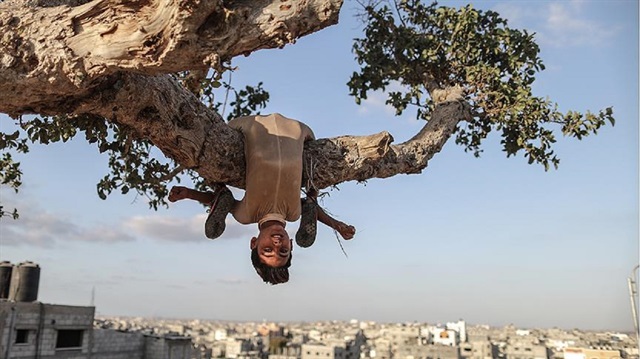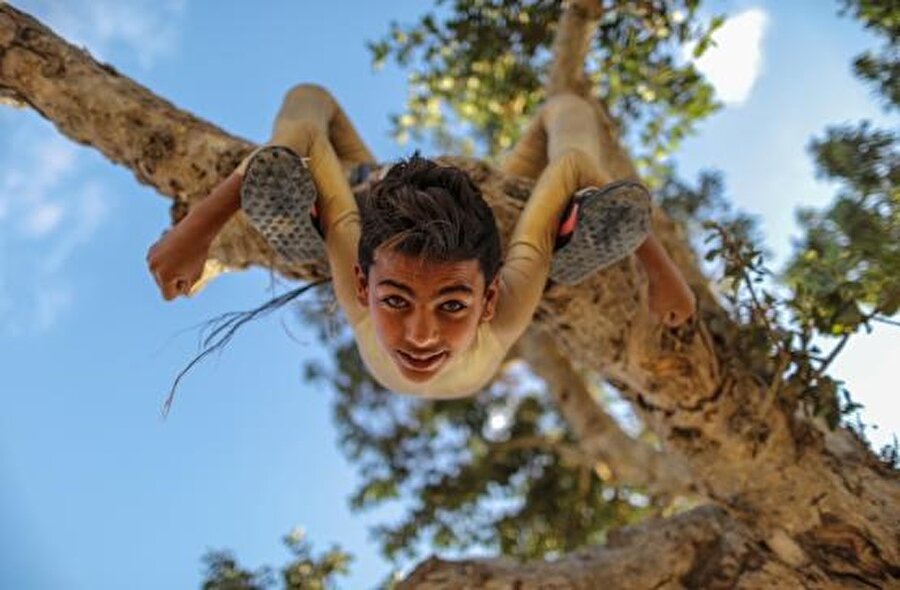 Gazze'de yaptığı cimnastik hareketleriyle yeteneğini her gün biraz daha geliştirmek için gayret sarf eden 12 yaşındaki Yusuf el-Behtini, esnekliğiyle görenleri şaşkına çeviriyor.