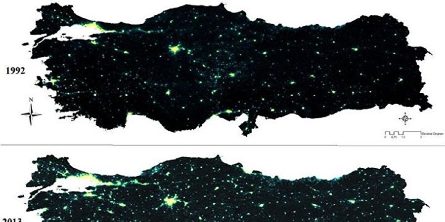 TEPAV'ın, ABD'nin Ulusal Okyanus ve Atmosfer Dairesi'nin verilerine dayandırdığı raporuna göre gelişmişlik seviyesi uzaydan görünüme göre ölçülebiliyor.