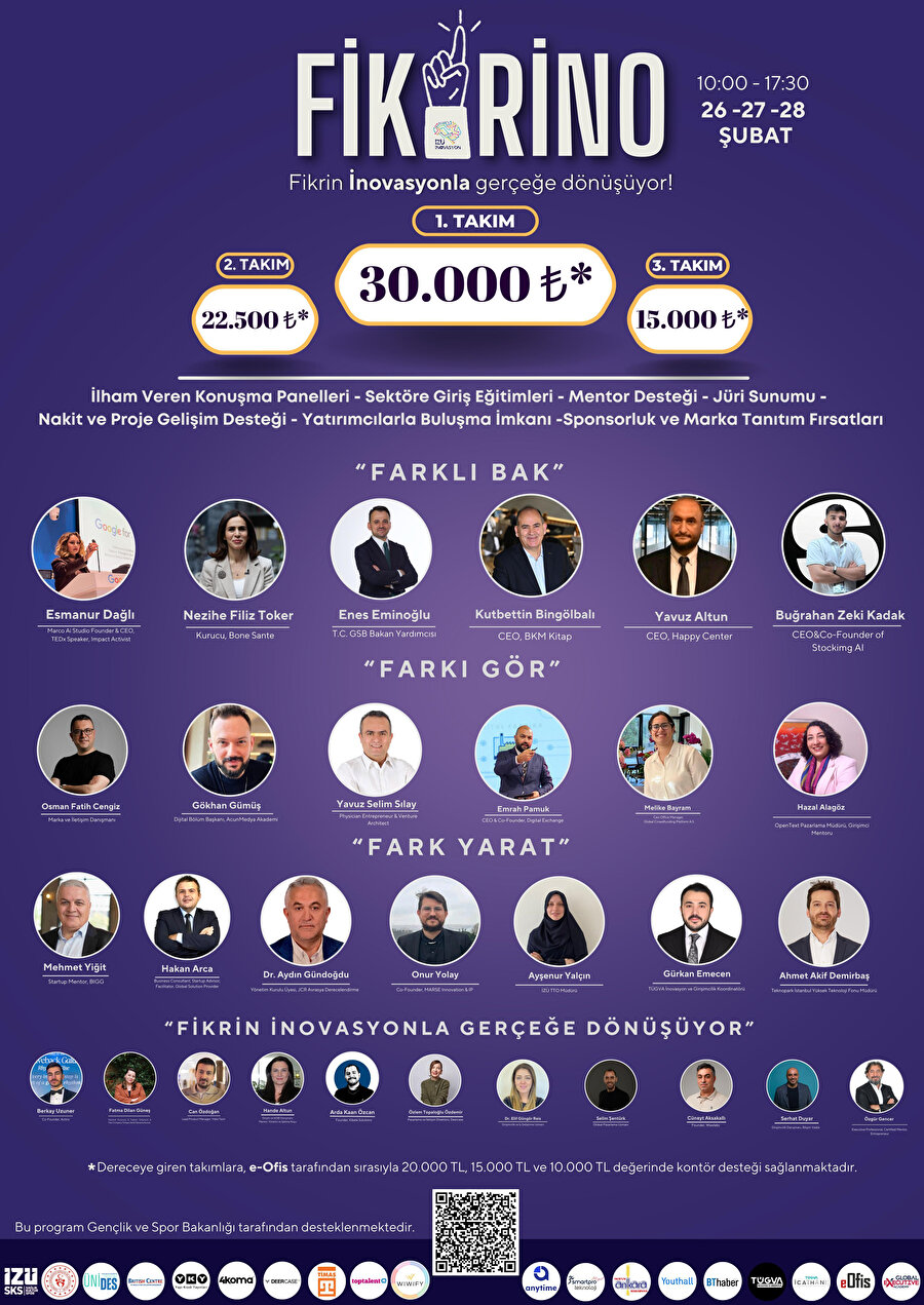 İnovasyon ve girişimcilik ekosistemine adım atmak isteyenler için büyük bir fırsat. İstanbul Sabahattin Zaim Üniversitesi İnovasyon Kulübü'nün düzenlediği FİKİRİNO, girişimcilik yolculuğunda destek arayan herkes için maddi destek, ofis imkânı, mentörlük ve yatırımcılarla birebir görüşmeler sunan benzersiz bir organizasyon sunuyor.