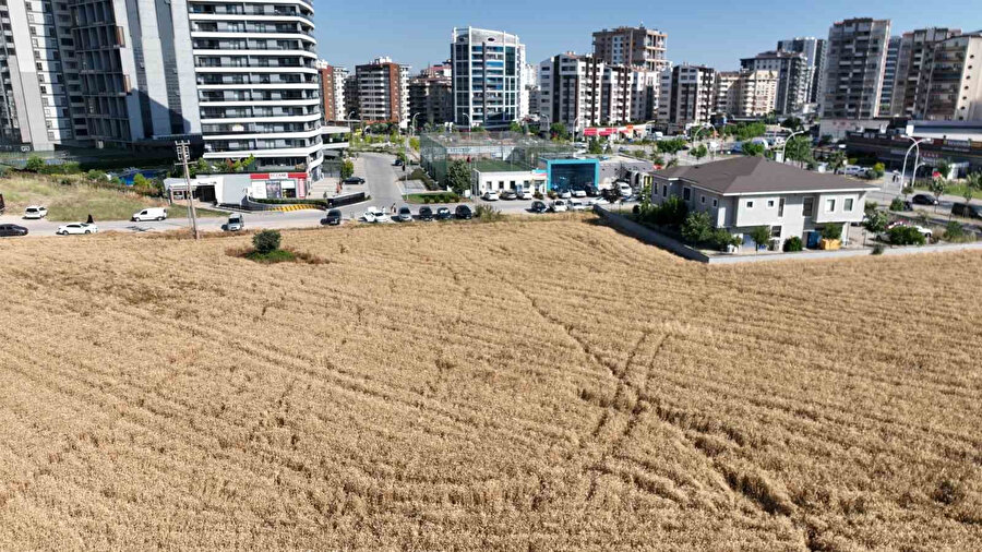 Lüks gökdelenlerin tam ortasında kalan ve imarlı dönümü 25-30 milyon lira olan alanda halen tarımsal üretime devam eden üreticiler, 5 dönümde ekili alandan yaklaşık 3 ton buğday elde edip, kilosunu 13 liradan satarak 39 bin lira gelir sağlamayı hedefliyor.