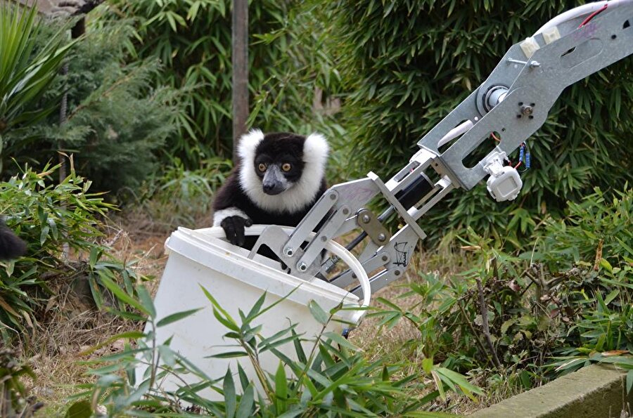 Lise öğrencileri, yanlarında getirdikleri robotu uzaktan kumanda ederek, içinde fıstık olan bir kovayla lemur barınağına soktu. Lemurların yiyeceklerini robotun taşıdığı kovadan almaları ilginç görüntüler oluşturdu.
