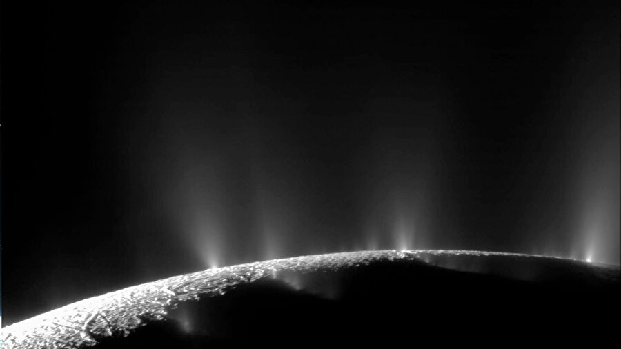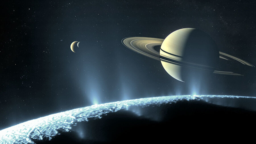 Satürn’ün altıncı büyük uydusu Enceladus, yaşam için gerekli tüm koşullara sahip olabilir. Bilim insanları, uydunun derin okyanusunda ve hidrotermal bacalarında yaşam izlerini araştırıyor, karbon bazlı moleküller arıyor ve Güneş Sistemi’nde yaşam olasılığını daha yakından incelemeyi planlıyor.