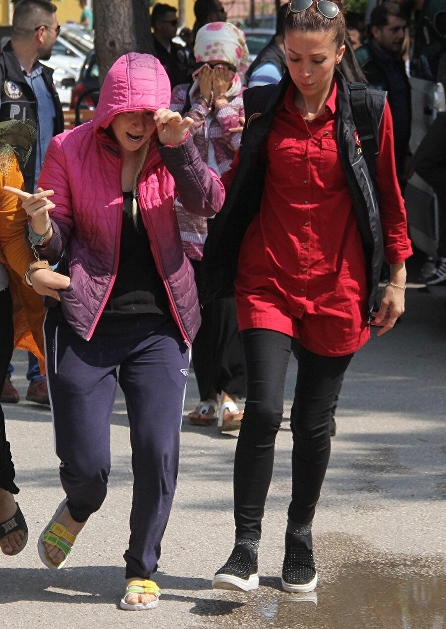 Adana'da uyuşturucu operasyonunda gözaltına alınan 3'ü kadın 15 kişi adliyeye sevk edildi. Şüpheli kadınlardan biri, "Ben ana kraliçeyim öyle yazın" diye bağırdı.
