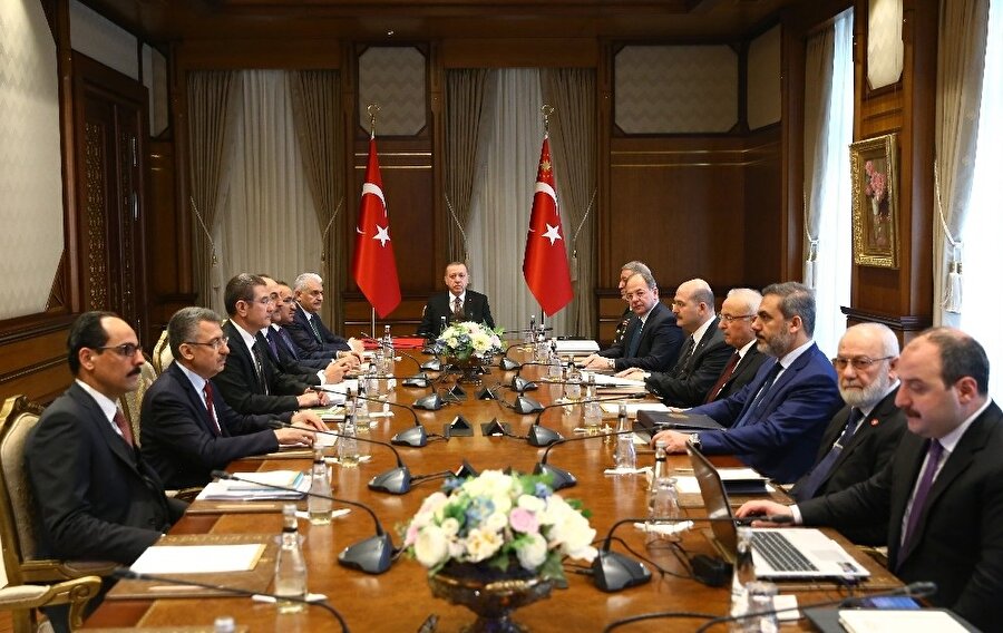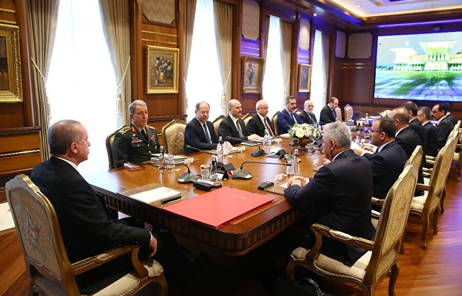 Operasyon kapsamında gelinen aşama ve izlenecek yol haritası Cumhurbaşkanı Erdoğan’ın başkanlığını yaptığı toplantıda masaya yatırıldı.