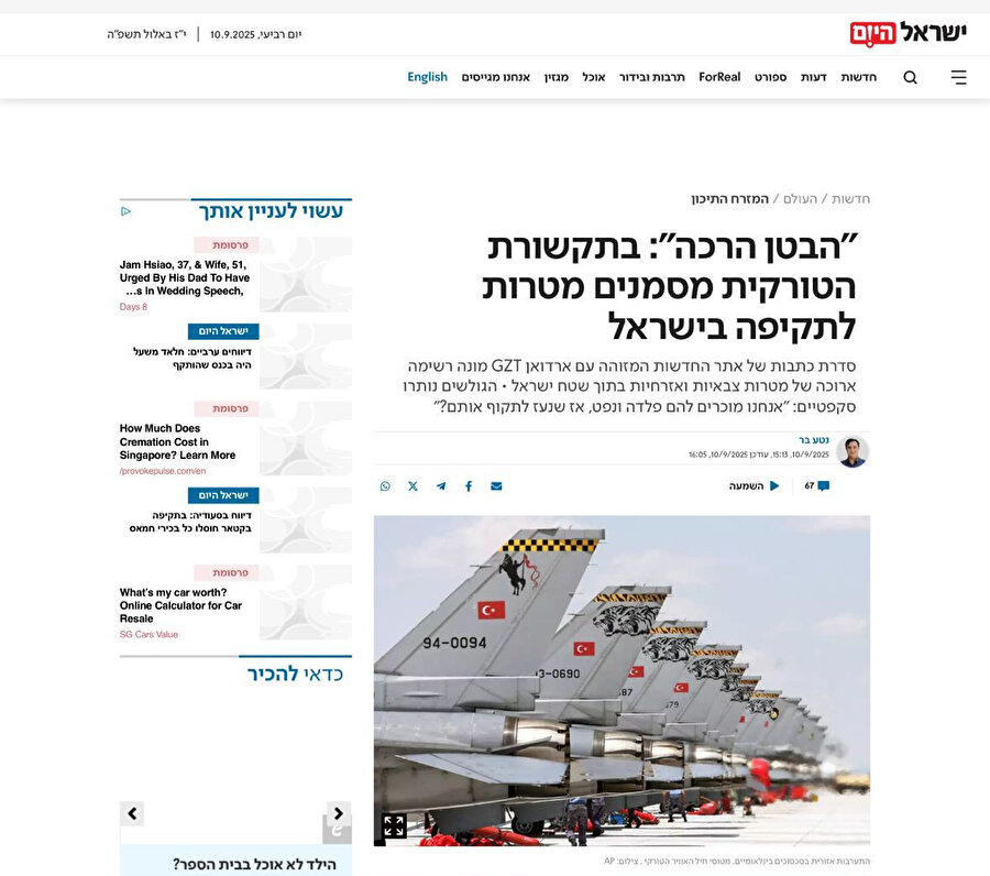 İsrail Hayom gazetesi, GZT’nin hazırladığı iki bölümlük videoya dikkat çekti. Haberde, “İsrail içindeki çok sayıda askeri ve sivil tesis potansiyel hedefler arasında yer alıyor” ifadeleri kullanıldı.