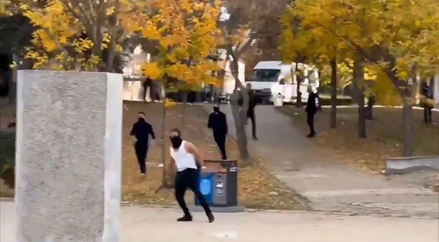 Tartışmanın büyümesiyle birlikte arbede çıktı. Olay sırasında, yüzü kapalı bir öğrencinin elinde pala olduğu görüldü. Sosyal medyada paylaşılan görüntülerde, öğrencinin çevresindekilere saldırmaya çalıştığı anlar yer aldı.