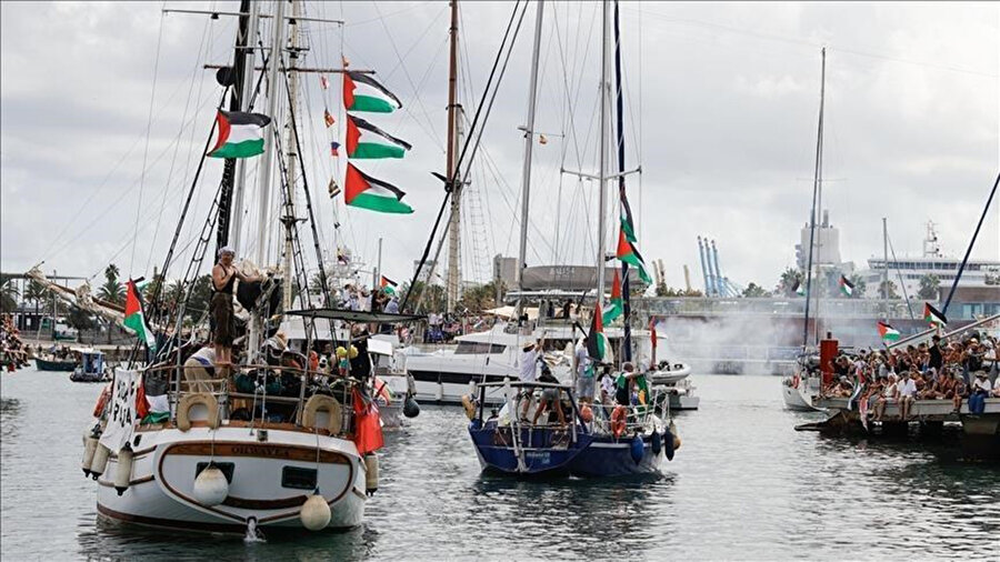 İsrail ablukasını kırmak ve insani yardım ulaştırmak amacıyla Gazze'ye doğru yol alan Küresel Sumud Filosu'nu kuşatan İsrail donanması unsurları, gemileri yasa dışı şekilde ele geçirmeye başladı.