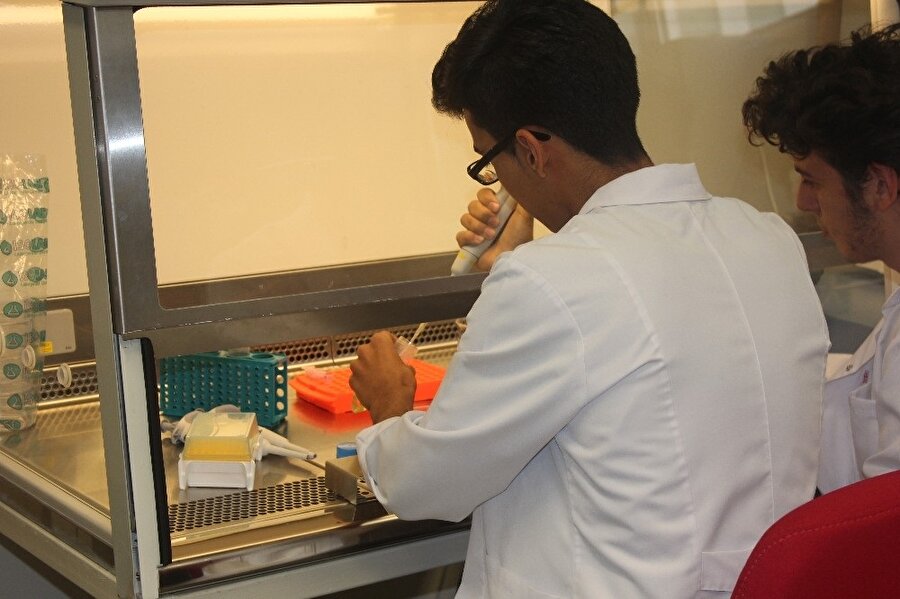 Bünyamin Aktürk ise projenin laboratuvar aşamasını anlatarak, “Bakterilerimizi önce sıvı besiyerinde büyüttük daha sonra katı besiyerine ektik. Yaptığımız kitinli kumaşı bakterilerin üzerine koyduk, üstten de ultraviyole ışın verdik. Daha sonra bakterileri inkübatöre koyarak üreyip ürememe durumunu test ettik. Yaptığımız kitinli kumaşın altındaki bakterilerin üremeye devam ettiğini ve diğer kontrol kumaşının altından ki bakterilerin üremediğini gördük” ifadelerini kullandı.