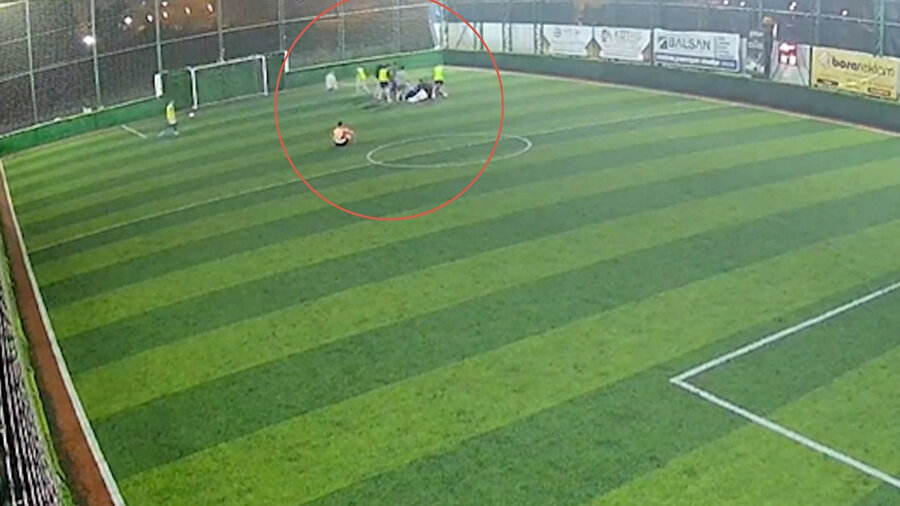 Öte yandan yaşananlar ise halı sahanın güvenlik kamerasına saniye saniye yansıdı. Görüntülerde M.U.’nun topa vurduktan sonra yere yığıldığı, arkadaşlarının yardıma koştuğu görüldü.