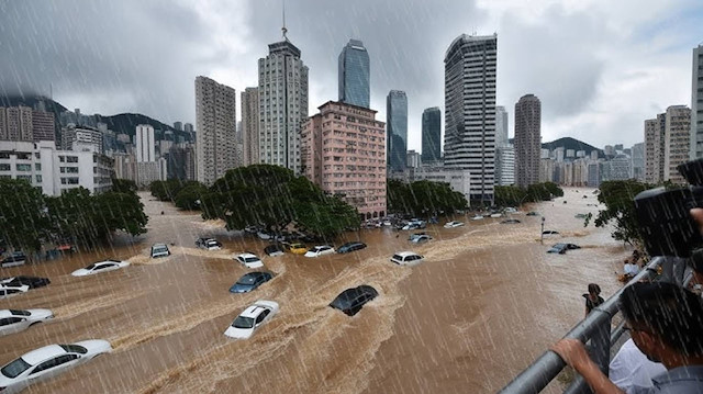 Hong Kong'un dört bir yanını sel bastı: Siyah seviye fırtına alarmı verildi