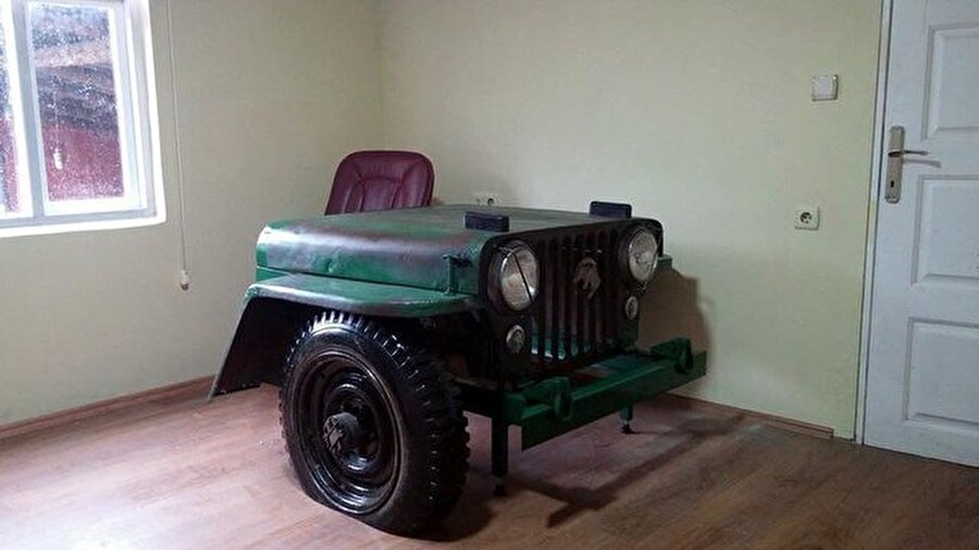 Zonguldak'ta yaşayan Oto tamircisi 40 yaşındaki Erkan Çiçek 1952 model hurda cipin ön tarafından mükemmel bir masa tasarladı.