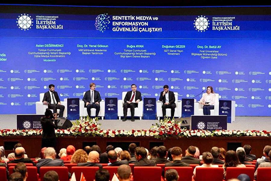 Sentetik Medya ve Enformasyon Güvenliği Çalıştayı'nın "Yapay Zeka Çağında Yeni Medya ve Riskler" konulu ilk oturumun moderatörlüğünü Cumhurbaşkanlığı İletişim Başkanlığı Dijital Medya Koordinatörü Aslan Değirmenci üstlendi. Değirmenci, konuşmasında yapay zekanın büyük veri setlerinden öğrenerek ve belirli kalıpları analiz ederek etkileyici sonuçlar üretebildiğini ancak, gerçek anlamda duyguları hissedemeyeceğinin altını çizdi.
