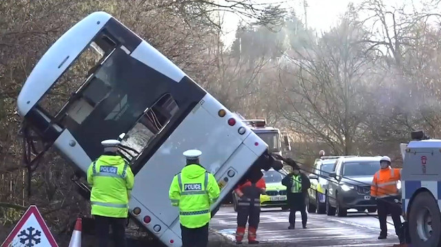 İngiltere’de öğrencileri taşıyan bir okul otobüsü, okul gezisinden döndüğü sırada devrilerek yaklaşık 6 metrelik yamaçtan kaydı. Feci kaza sonucu bir öğrenci hayatını kaybetti, ikisi ağır 21 kişi ise yaralandı.