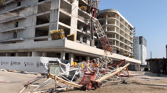 İnşaat alanında vinç devrildi, operatör mahsur kaldı