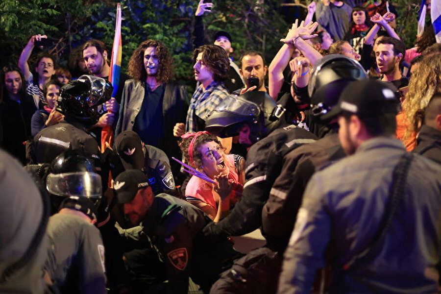 Ellerinde İsrail bayraklarıyla sık sık 'demokrasi' sloganları atan göstericiler, koalisyon hükümetindeki aşırı sağcı politikacıları eleştiren dövizler taşıdı.