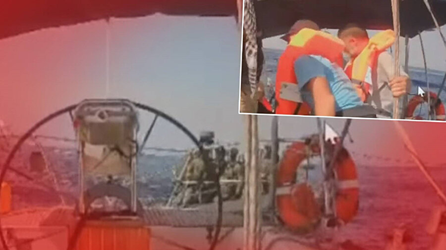 Marinette teknesinden yapılan canlı yayında İsrail donanmasından bir geminin tekneye yanaştığı görüldü.
