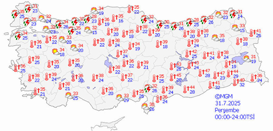 Hafta sonuna gelindiğinde ise Marmara, Karadeniz ve Doğu Anadolu bölgelerinde yağışların etkisini artırması bekleniyor. Özellikle 2 ve 3 Ağustos günlerinde yurdun kuzey ve doğusunda sağanak ve gök gürültülü sağanak yağışlar görülecek. Bu günlerde hava sıcaklıklarında da birkaç derecelik düşüş yaşanması öngörülüyor.