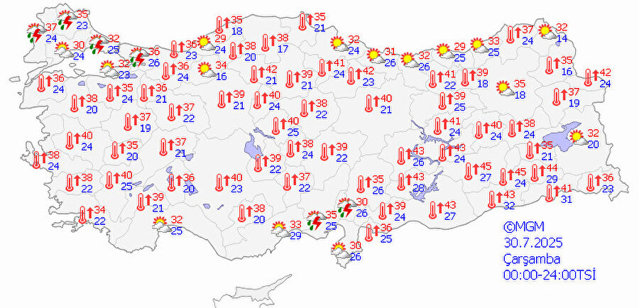 Mayıs ayından bu yana ciddi bir yağış almayan İstanbul için ise sonunda yağmur müjdesi geldi. MGM verilerine göre, 30 Temmuz Çarşamba ve 1 Ağustos Cuma günleri İstanbul’da gök gürültülü sağanak yağış bekleniyor. Sıcaklığın 31–32 derece aralığında seyredeceği bu günlerde, nem oranının yüzde 90’ı aşmasıyla birlikte hissedilen sıcaklık çok daha yüksek olacak.
