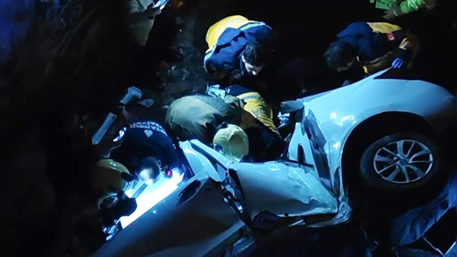 İhbar üzerine olay yerine polis, itfaiye ve sağlık ekipleri sevk edildi. Kaza sonrası otomobilde sıkışan sürücü Eren B., itfaiye ekiplerinin uzun süren çalışmalarından sonra sıkıştığı yerden çıkarıldı.