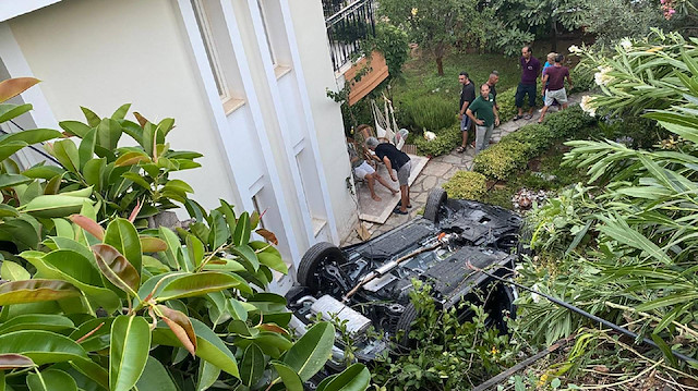 E.Ü'nün kullandığı 26 AKA 740 plakalı otomobil, Turunç Mahallesi'nde kontrolden çıkıp istinat duvarını aşarak evin bahçesine düştü. Kazada, sürücü ile otomobildeki 4 kişi yaralandı.