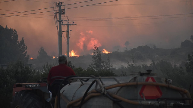 "Çok süratli rüzgarın etkisiyle yangın Germiyan, Karaköy ve Nohutlu mahallelerimize doğru hızlıca yayıldı. Akşam saat 20.30'a kadar 6 uçak, 20 helikopterle havadan, o saatten şu ana kadar arkadaşlarımız 217 kara aracı, 783 personel ve bununla birlikte güvenliği ve trafiği sağlayan jandarma ve emniyet personelimizle mücadelemize devam ediyoruz.