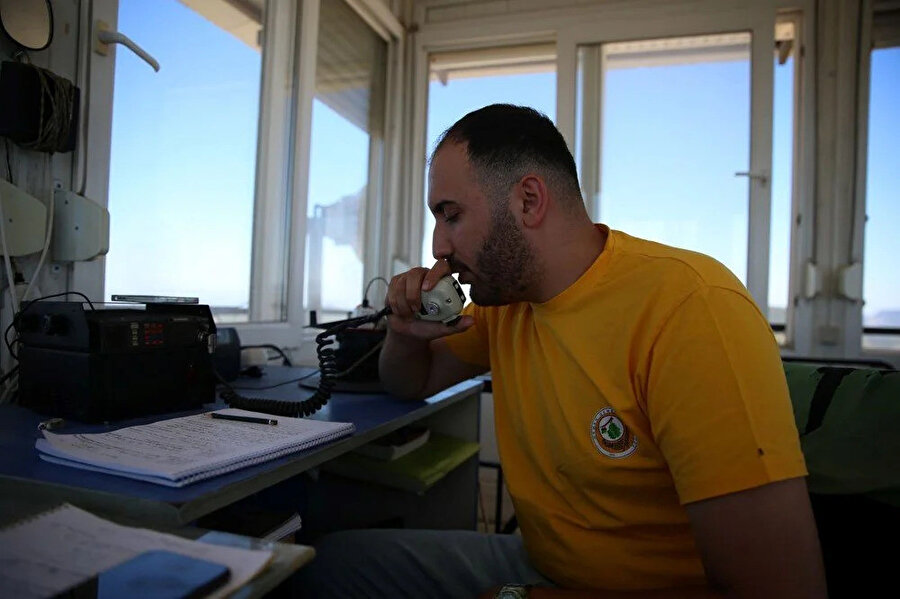 Durumun ciddi olduğunu anlayan Efeoğlu, yangını müdürlerine ve yer ekiplerine bildirdi. Kara ekiplerini telsiziyle yönlendiren Efeoğlu, alevlerin kuleye yaklaştığını da amirlerine aktardı.