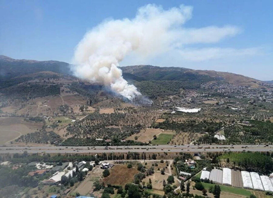 Rüzgarın etkisiyle ormanlık alana yayılan yangının kontrol altına alınması için İzmir Orman Bölge Müdürlüğüne bağlı 4 uçak, 5 helikopter, 22 arazöz, 5 su ikmal aracı ve 3 dozerle çalışma başlatıldı.