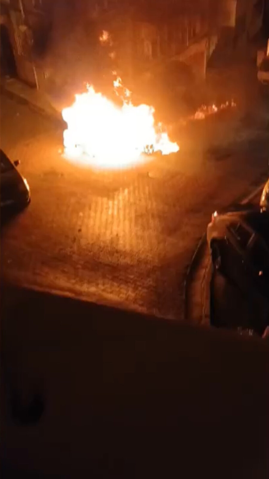 Kısa sürede olay yerine gelen itfaiye ekipleri yangına müdahale ederek alevleri kontrol altına aldı. Tamamen yanan araç kullanılamaz hale gelirken, çevredeki binalara sıçrama ihtimali nedeniyle mahalle sakinleri büyük endişe yaşadı. O anlarda bazı vatandaşların “Bu binayı boşaltmamız lazım” ve “Alevler aşağı geliyor” diyerek telaşla koşuşturduğu duyuldu.