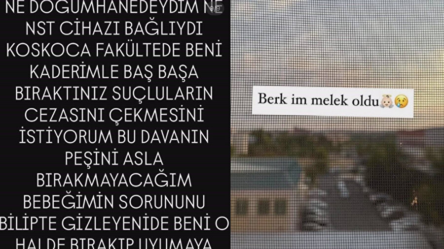 - "Adalete güvenim tam. Gereken tüm hukuki yollara başvurdum. Ne gerekirse yapacağım. Bu olayın peşindeyim suçluların gereken cezaları almasını istiyorum. Ayrıca bebeğimin diyaframında sorun varmış. Normalde bu sorun en geç 18'inci haftaya kadar görülür. Ben 23'üncü hafta içerisinde gitmeme rağmen raporlarım normal verildi, 'Sorun var' denilmedi. Doğduktan sonra öğrendim" ifadelerini kullandı. T.Z., gebelik takibini yapan doktorla doğumdan sonra yaptığı görüşmeye ilişkin de konuşarak, "Bebeğimi kaybettikten sonra, normal kontrollerime gittiğim doktorumla görüştüğümde bana 'Ben akciğerinde sıvı görmüştüm ama sana söylemedim. Beni de şikayet edebilirsin' dedi. Böyle olmamalıydı gerçekten. İnşallah başka kimsenin canı yanmaz. Bir sorun varsa söylenmeliydi, gereken müdahale zamanında yapılmalıydı"